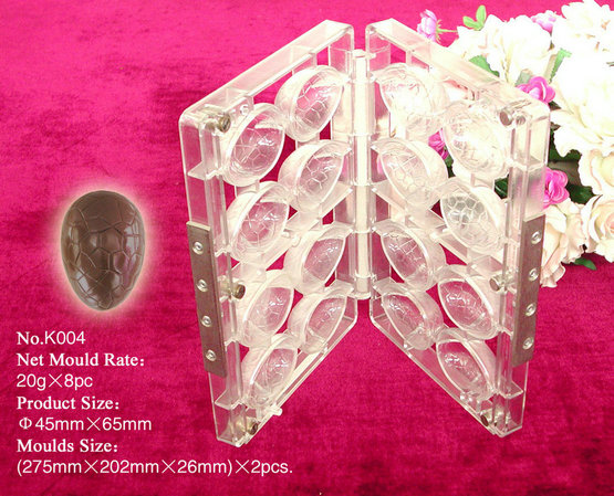 PC系列巧克力印模系熱固塑型工藝生產的產品,具有表面光澤,抗沖耐溫性能良好,產品在外界-10℃~100℃溫差范疇內,保證產品品質不變