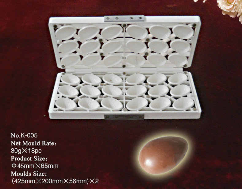 PC系列巧克力印模系熱固塑型工藝生產的產品,具有表面光澤,抗沖耐溫性能良好,產品在外界-10℃~100℃溫差范疇內,保證產品品質不變