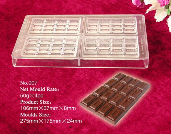 PC系列巧克力印模系熱固塑型工藝生產的產品,具有表面光澤,抗沖耐溫性能良好,產品在外界-10℃~100℃溫差范疇內,保證產品品質不變,